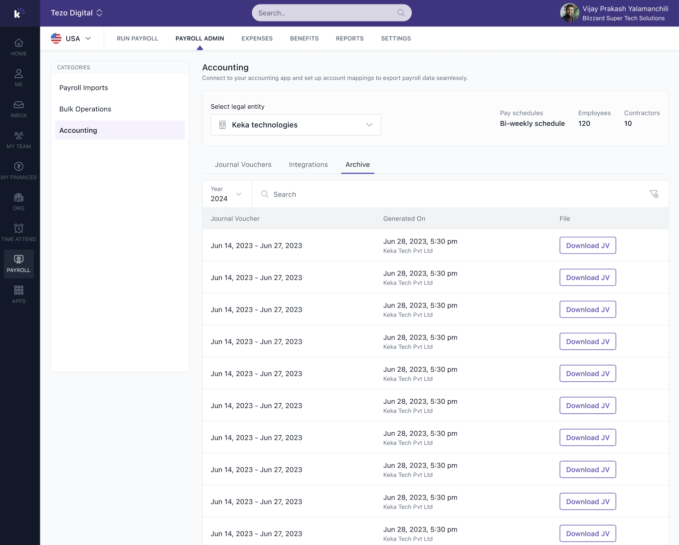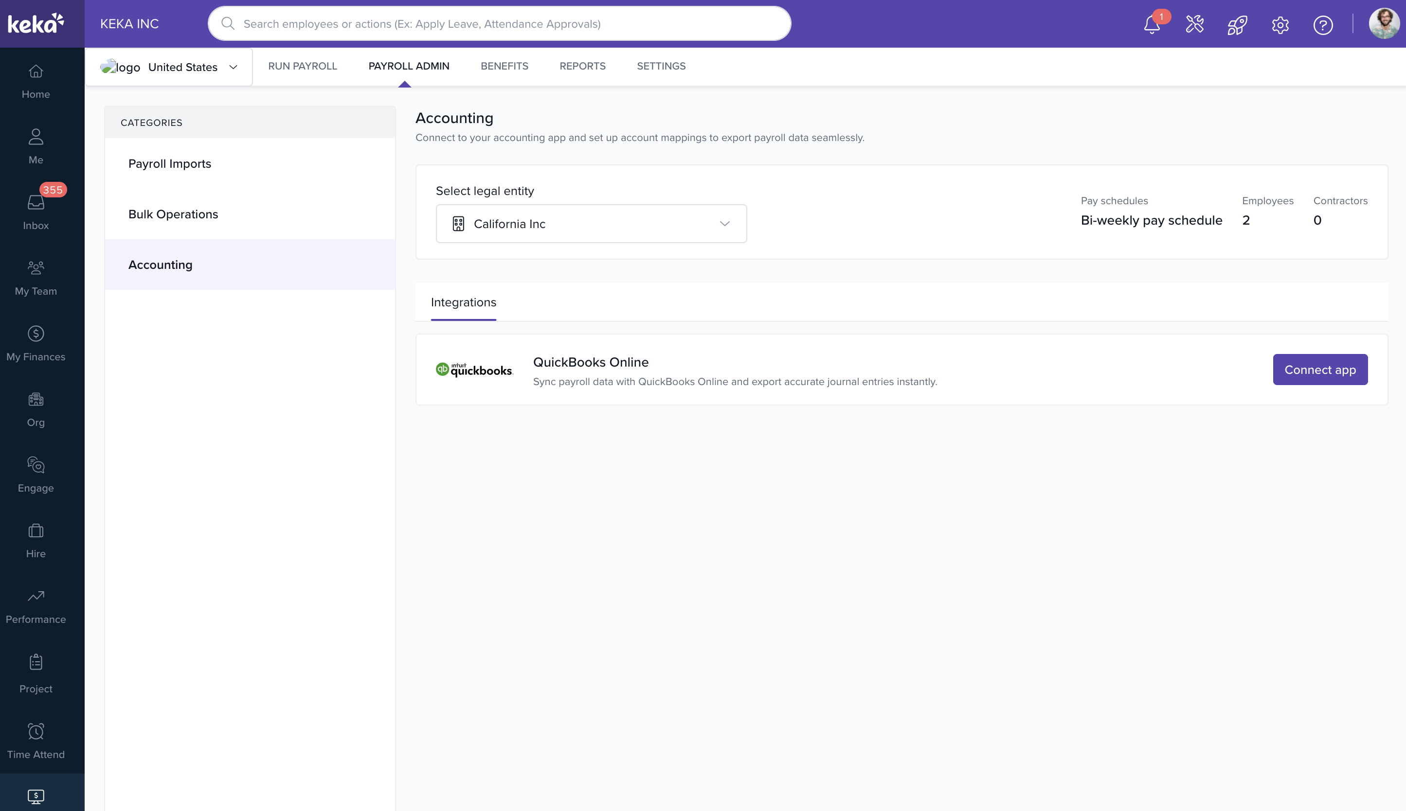 Keka’s QuickBooks Online (QBO) integration allows Payroll Admins to seamlessly export payroll journal vouchers (JVs) into QuickBooks—eliminating the need for manual journal entry each month. Once set up, you can connect your QuickBooks account, map payroll categories to your Chart of Accounts (COA), and export JVs directly as draft journal entries.