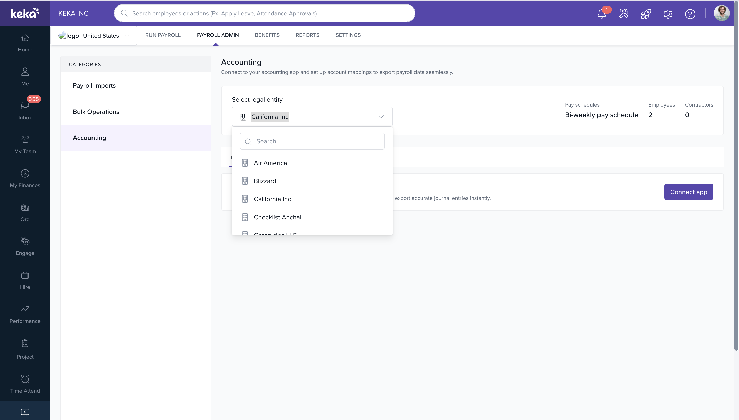 You’ll see all associated pay schedules and employee/contractor counts.