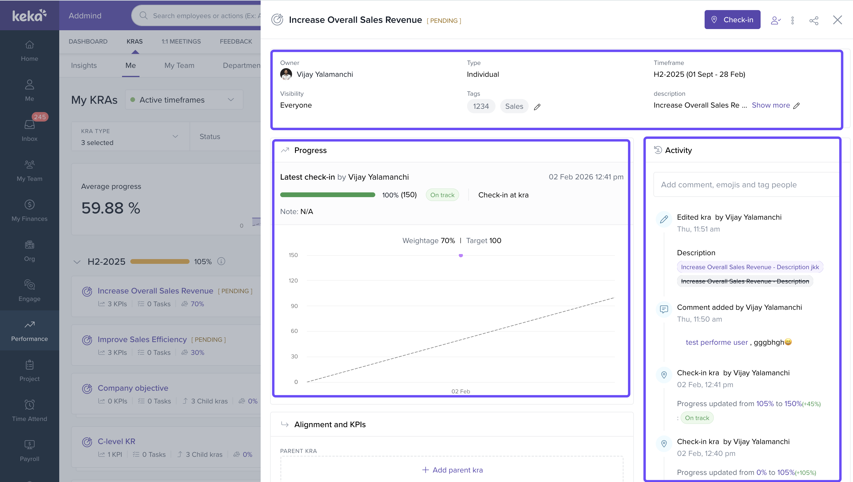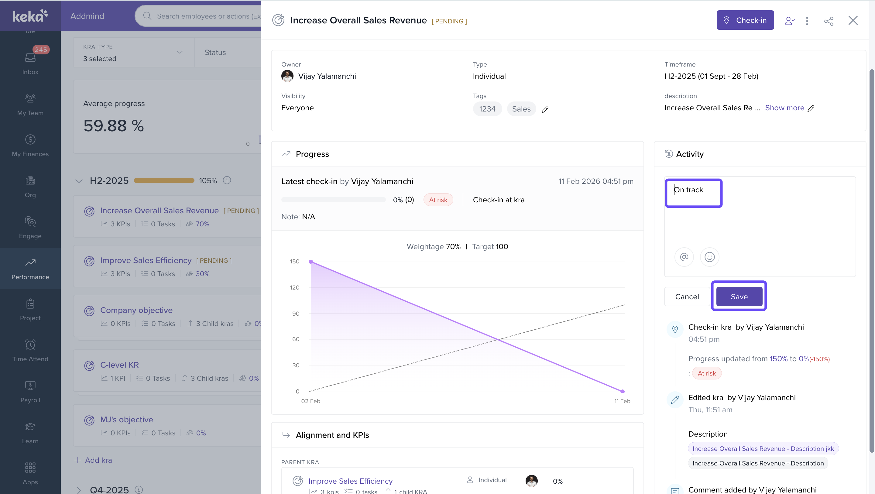 We’ve streamlined the Goals page to improve navigation and make goal details clearer. Previously, clicking on a goal redirected you to a separate page, which added complexity and made information harder to locate. Now, all goal details are available in a slider view, simplifying your workflow while reviewing OKRs.