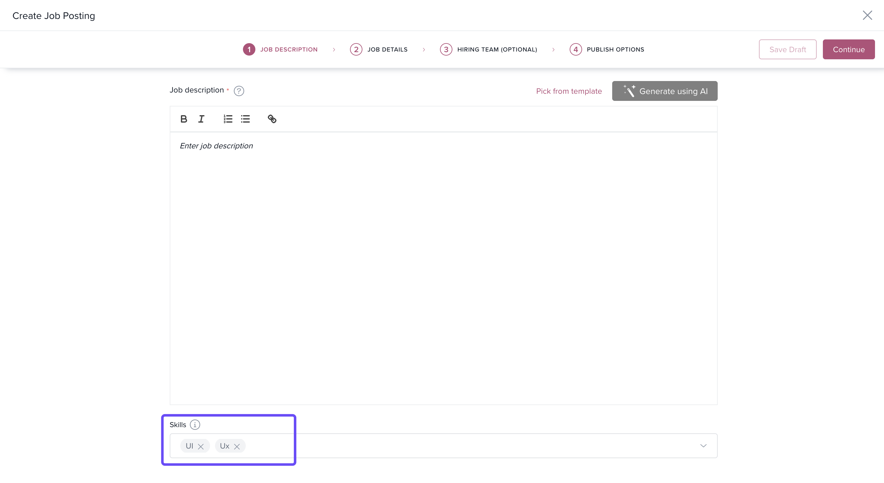 - Define required skills during job or requisition creation
