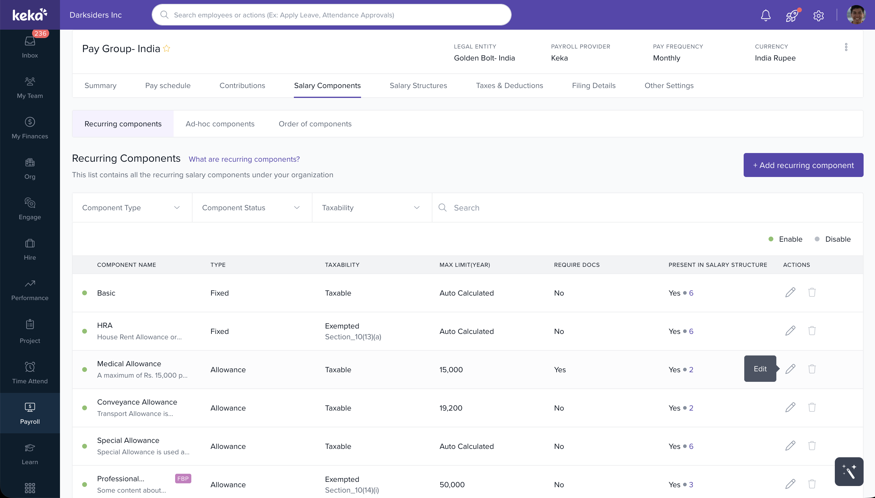 Certain components are configured as Paid outside the annual salary and processed through payroll separately from the CTC structure. Previously, these components were not automatically included in income tax calculations, which could result in under-deduction and compliance risks.