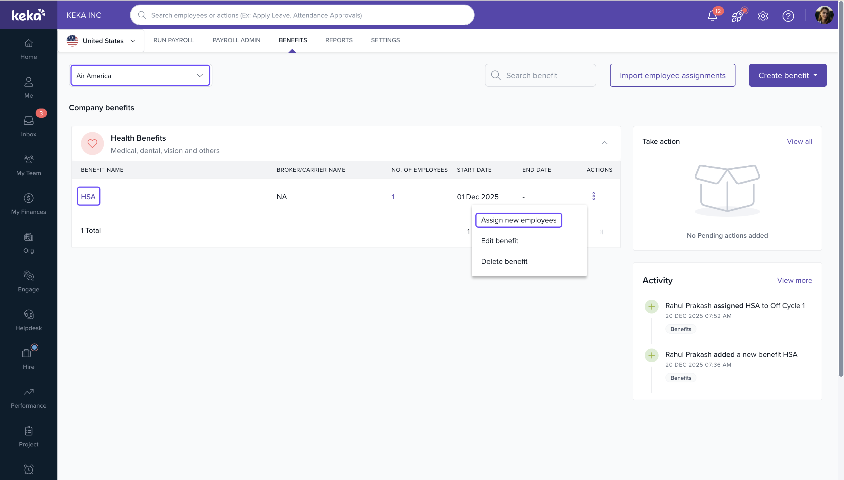 Managing employee benefits accurately is essential for ensuring smooth payroll processing. With this update, Keka enhances the Benefits module by introducing HSA Coverage Type at the employee enrollment level and support for additional benefit categories.