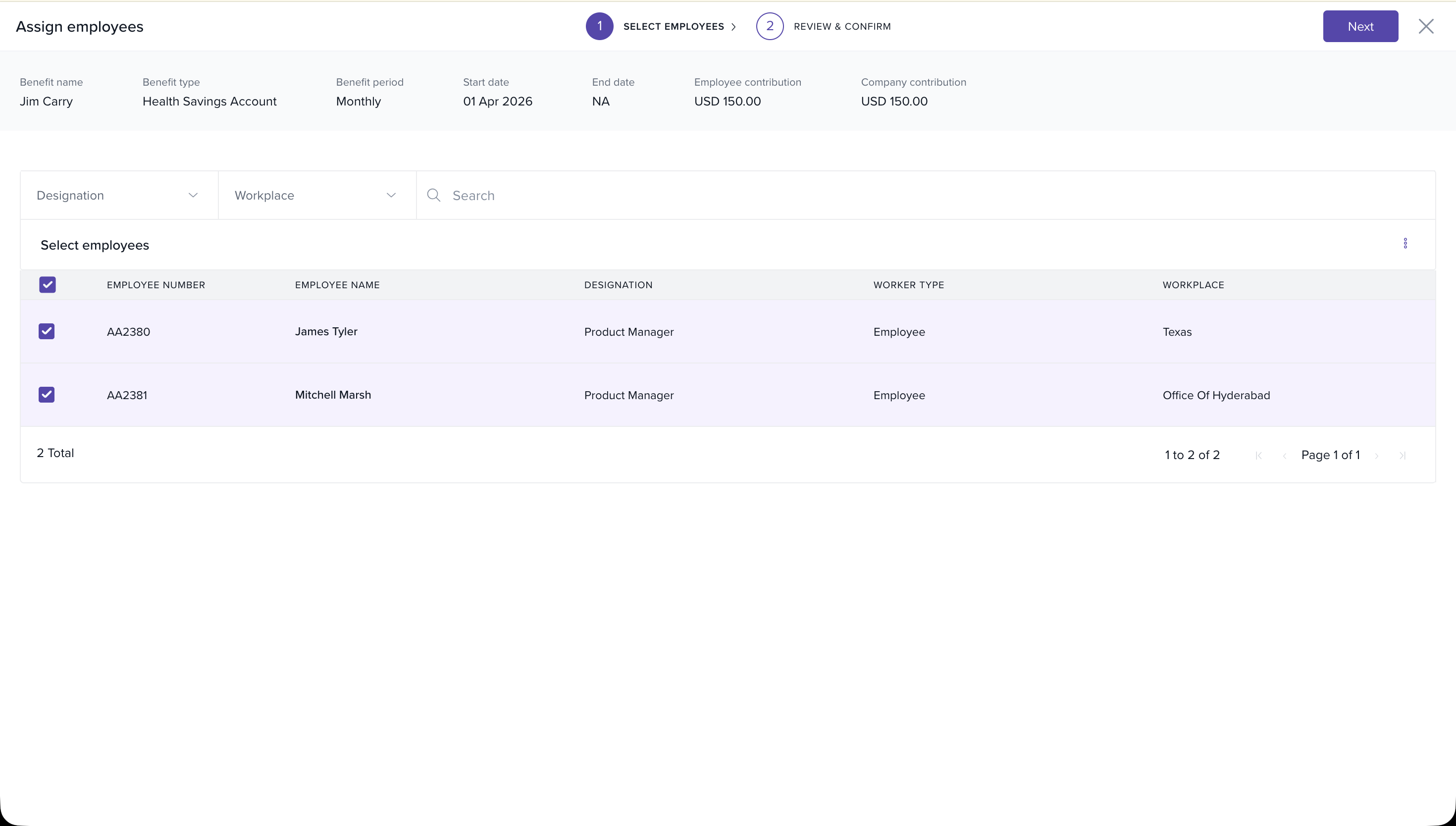 4. Select the employee,review and confirm the data and assign the benefit to the employee.