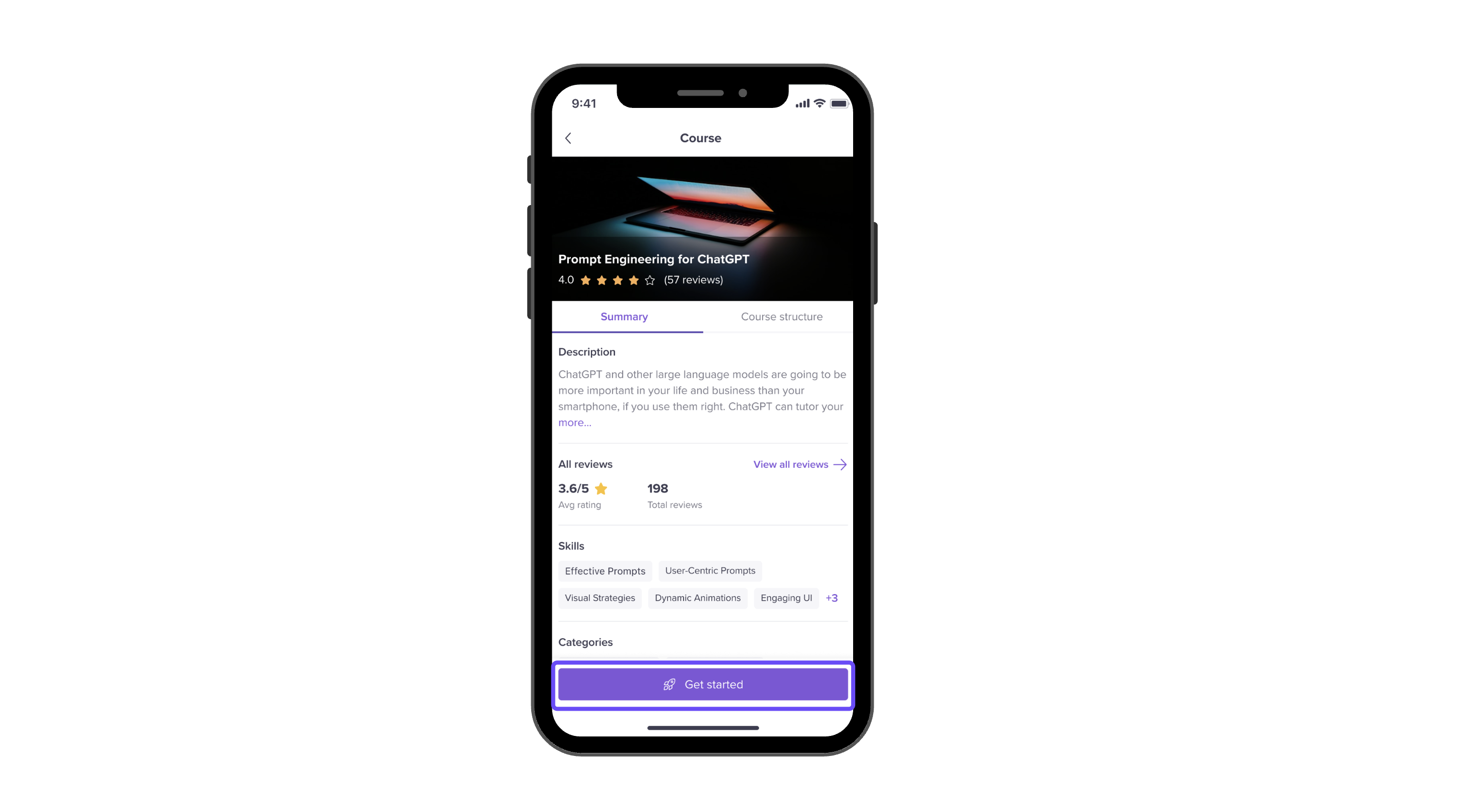 Accessing a course on mobile