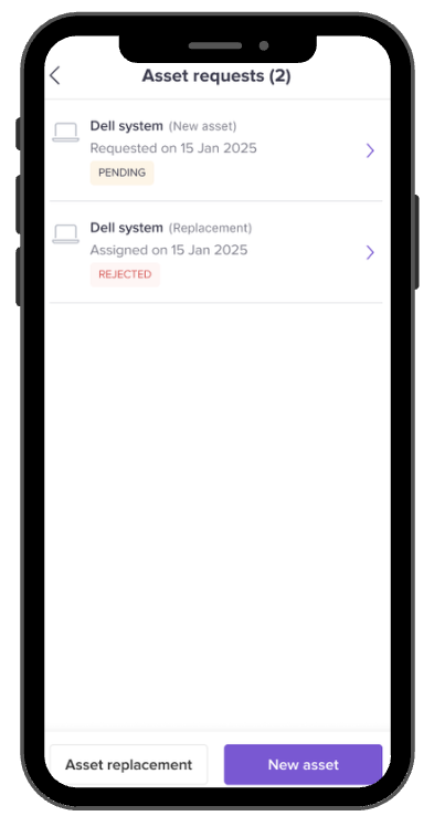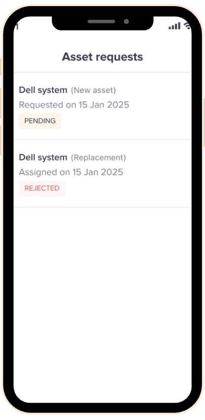 This article explains how to raise asset requests, track their status, and understand how the request workflow behaves on mobile.