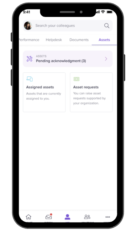 Navigate to Me → Assets → Asset Requests