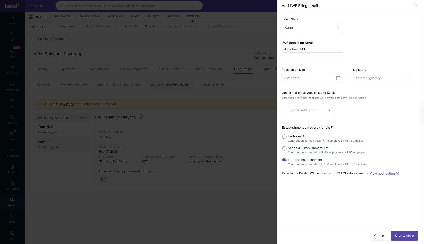 A new enhancement in the Labour Welfare Fund (LWF) module enables organizations to configure LWF contributions as per the Kerala IT & IT-Enabled Employees and Entrepreneurs Welfare Scheme (IT Act)—ensuring accurate statutory compliance without manual intervention.
